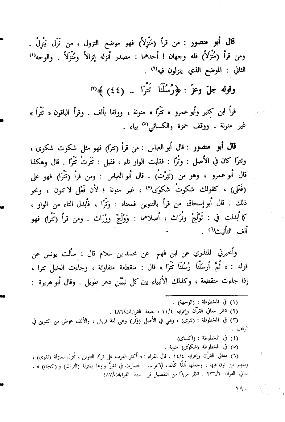 قال أبو منصور: قال أبو العباس: مَنْ قَرَأَ (تَتْرًا) فهو مثل شكوت شكوى،