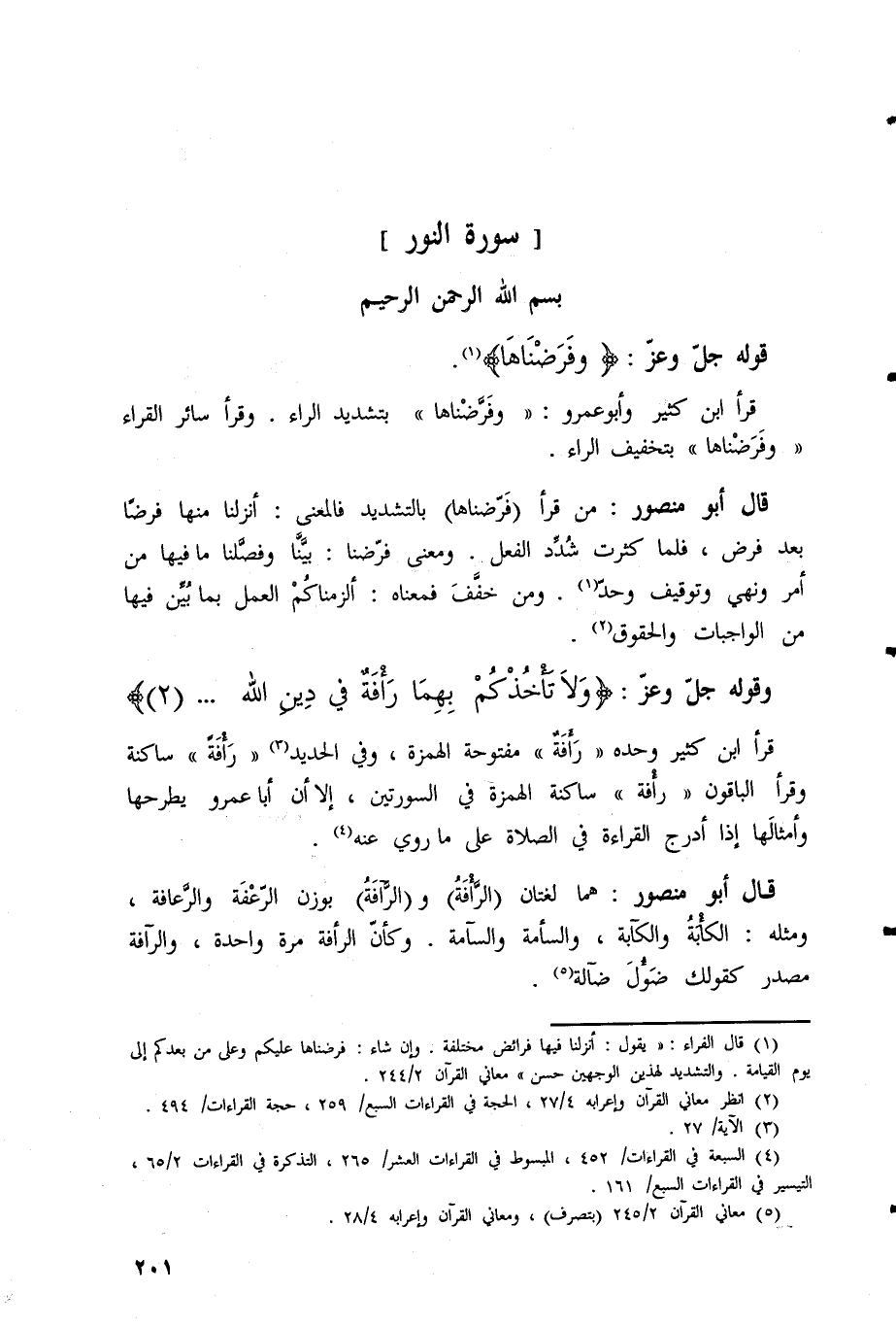 وقرأ الباقون رَأْفَةٌ ساكنة الهمزة في السورتين، إلا أن أبا عمرو يطرحها