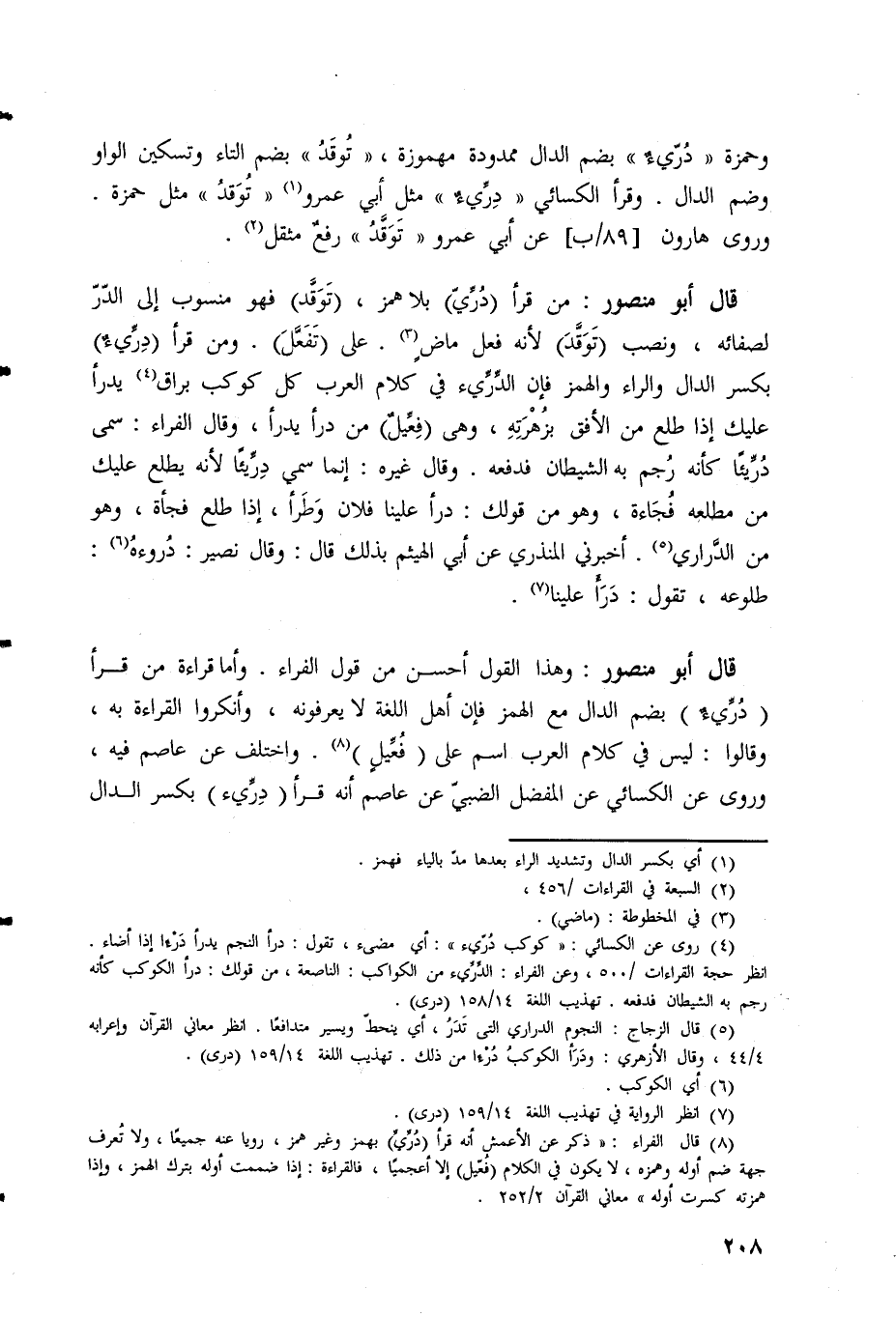قال أبو منصور: مَنْ قَرَأَ (دُرِّيٌّ) بلا همز، (تَوَقَّد) فهو منسوب إلى الدُّرِّ
