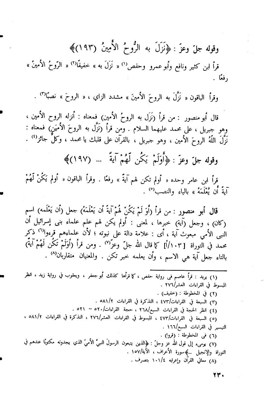 قال أبو منصور: مَنْ قَرَأَ (أَوَلَمْ يَكُنْ لَهُمْ آيَةً أَنْ يَعْلَمَهُ)