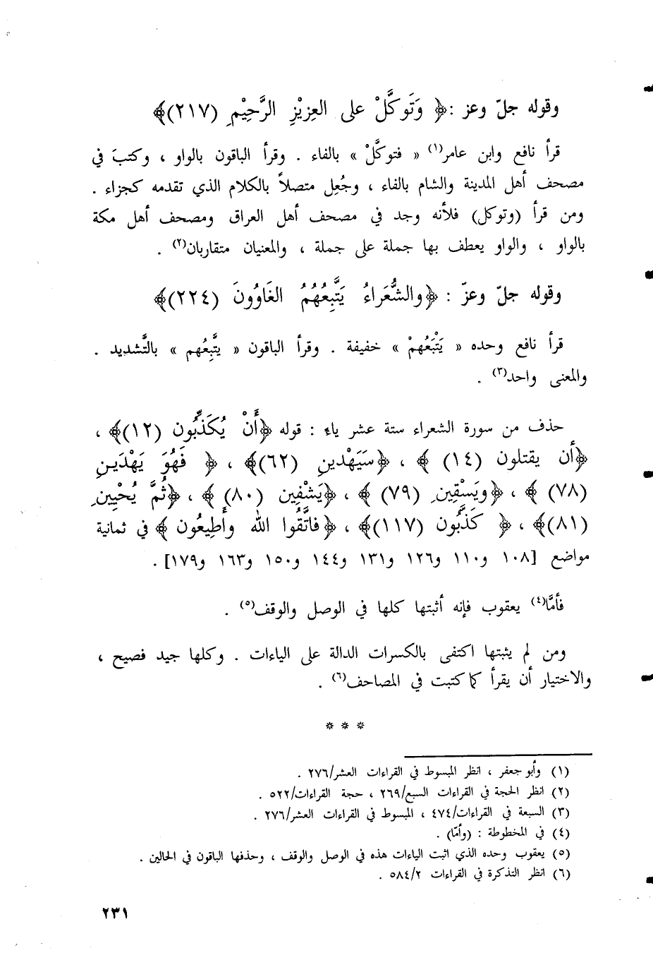 فأما يعقوب فإنه أثبتها كلها في الوصل والوقف.