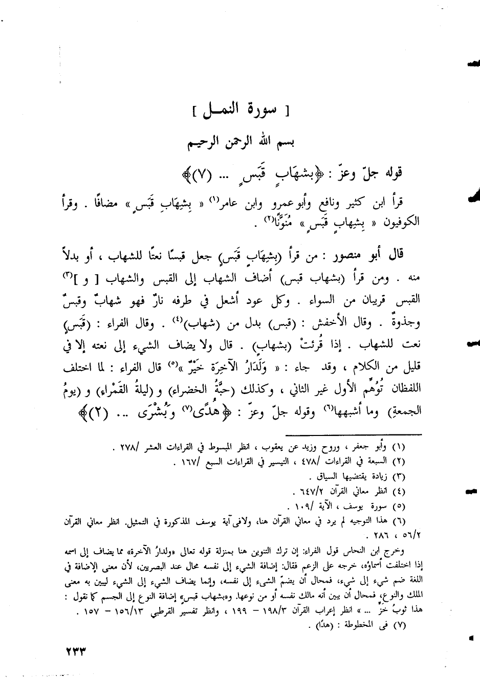 قال أبو منصور: مَنْ قَرَأَ (بِشِهَابٍ قَبَسٍ) جعل قبسًا نعتًا للشهاب، أو بدلاً