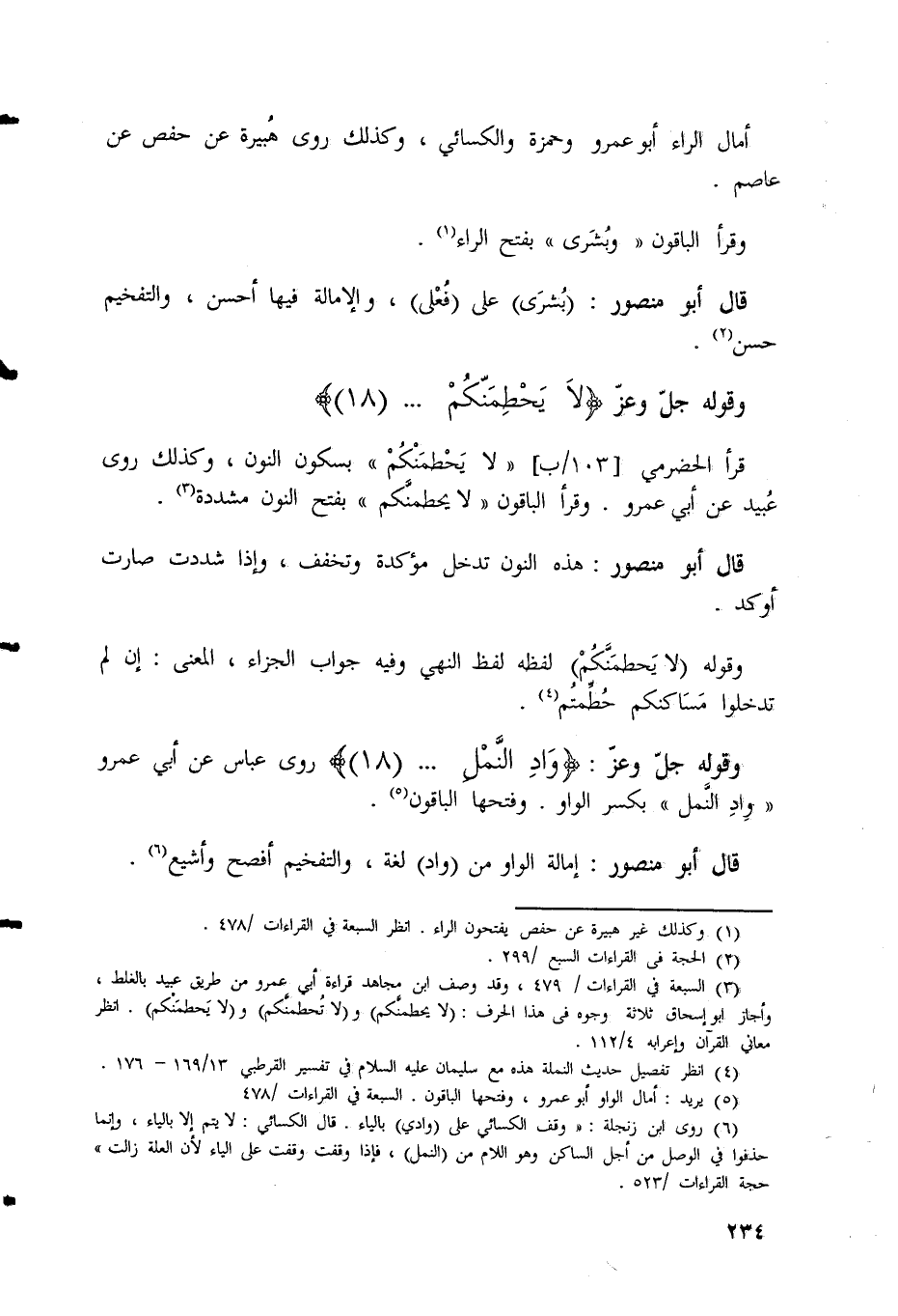 عُبيد عن أبي عمرو - وقرأ الباقون (لَا يَحْطِمَنَّكُمْ) بفتح النون مشددة.