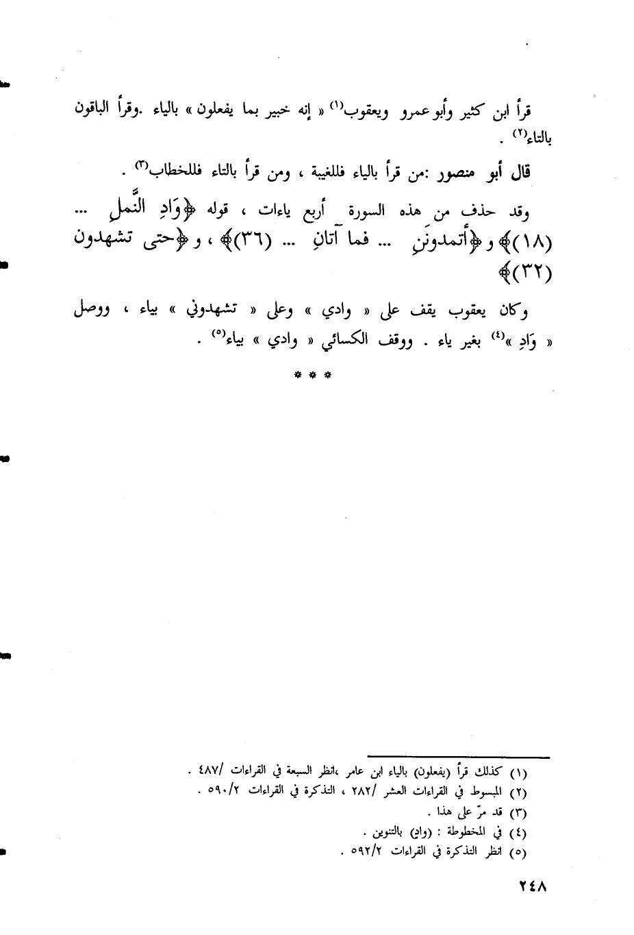 وقد حذف منِ هذه السورة أربع ياءات، قوله (وَادِ النَّملِ)