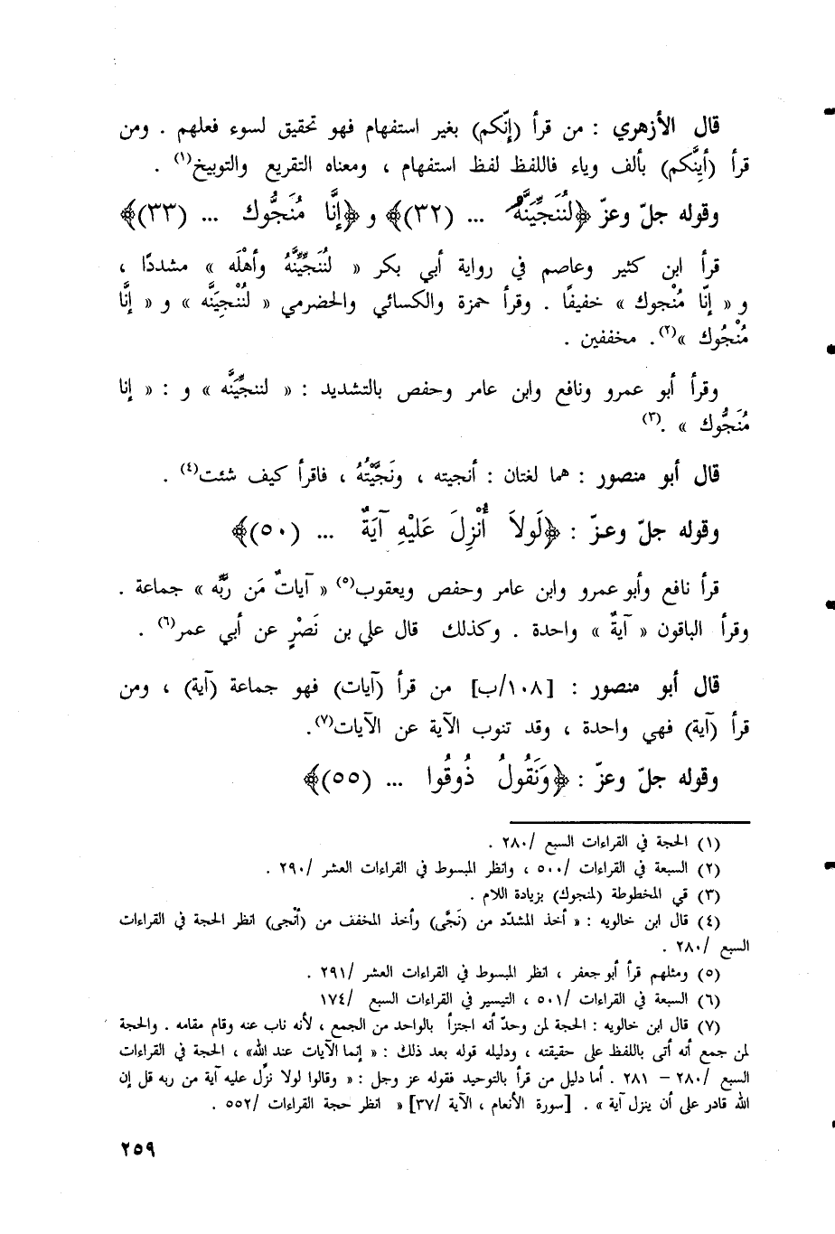 قال أبو منصور: هما لغتان: أنجيته، ونَجَّيتُهُ، فاقرأ كيف شئت.