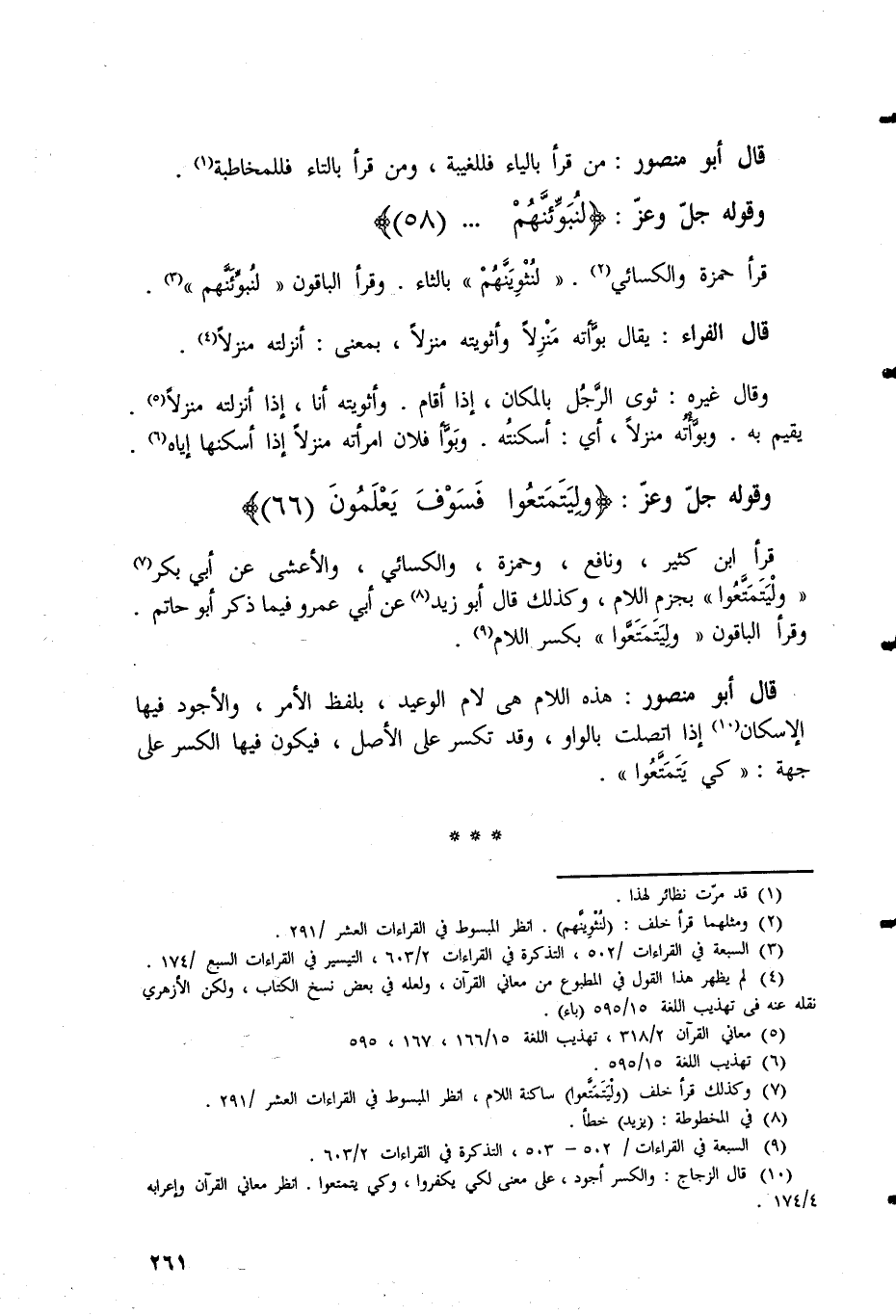 قال أبو منصور: مَنْ قَرَأَ بالياء فللغيبة، وَمَنْ قَرَأَ بالتاء فللمخاطبة.