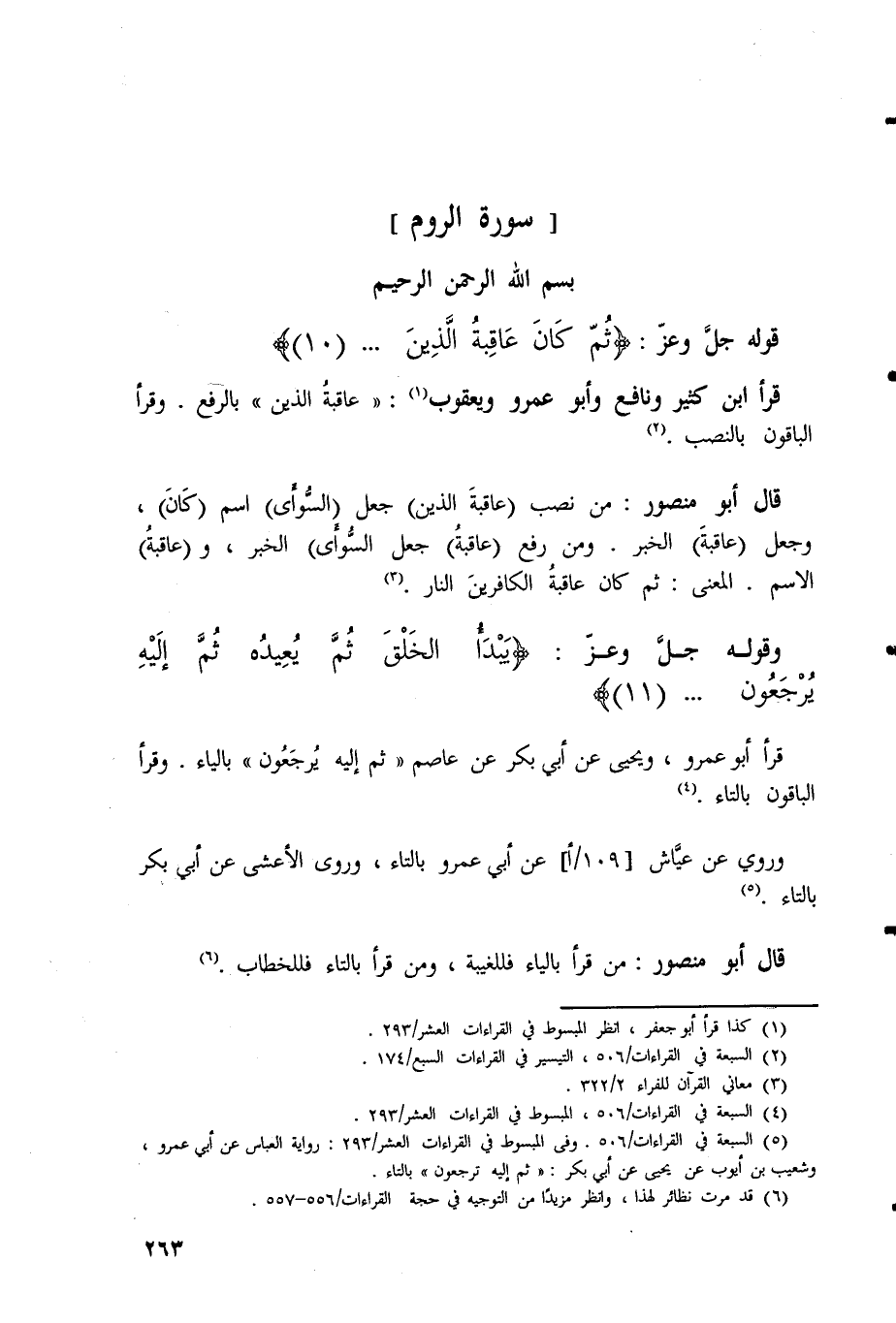 قال أبو منصور: من نصب (عَاقِبَةَ الَّذِينَ) جعل (السُّوأى) اسم (كَانَ) ،