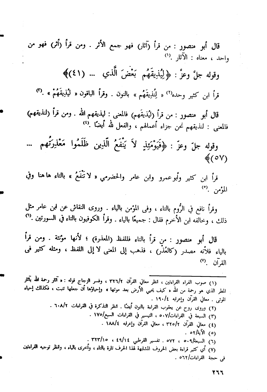 قال أبو منصور: بن قرأ بالتاء فللفظ (المعذرة) ؛ لأنها مؤنثة.
