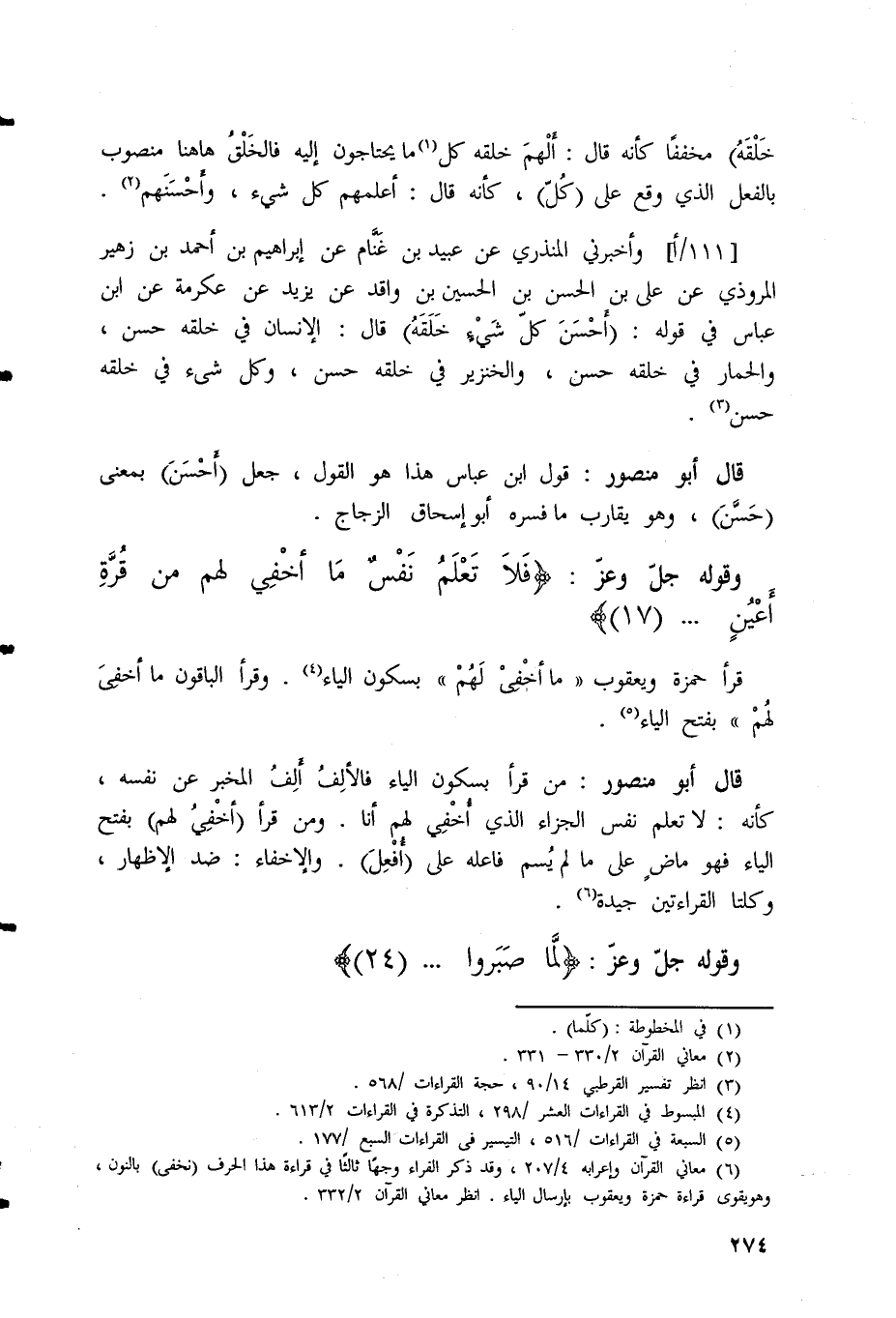 قال أبو منصور: قول ابن عباس هذا هو القول، جعل (أحْسَنَ) بمعنى