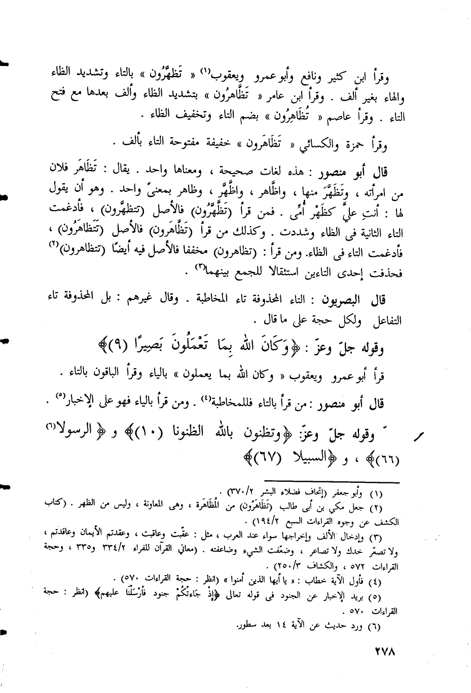 وكذلك مَنْ قَرَأَ (تَظَّاهَرون) فالأصل (تَتَظاهَرُون) ،