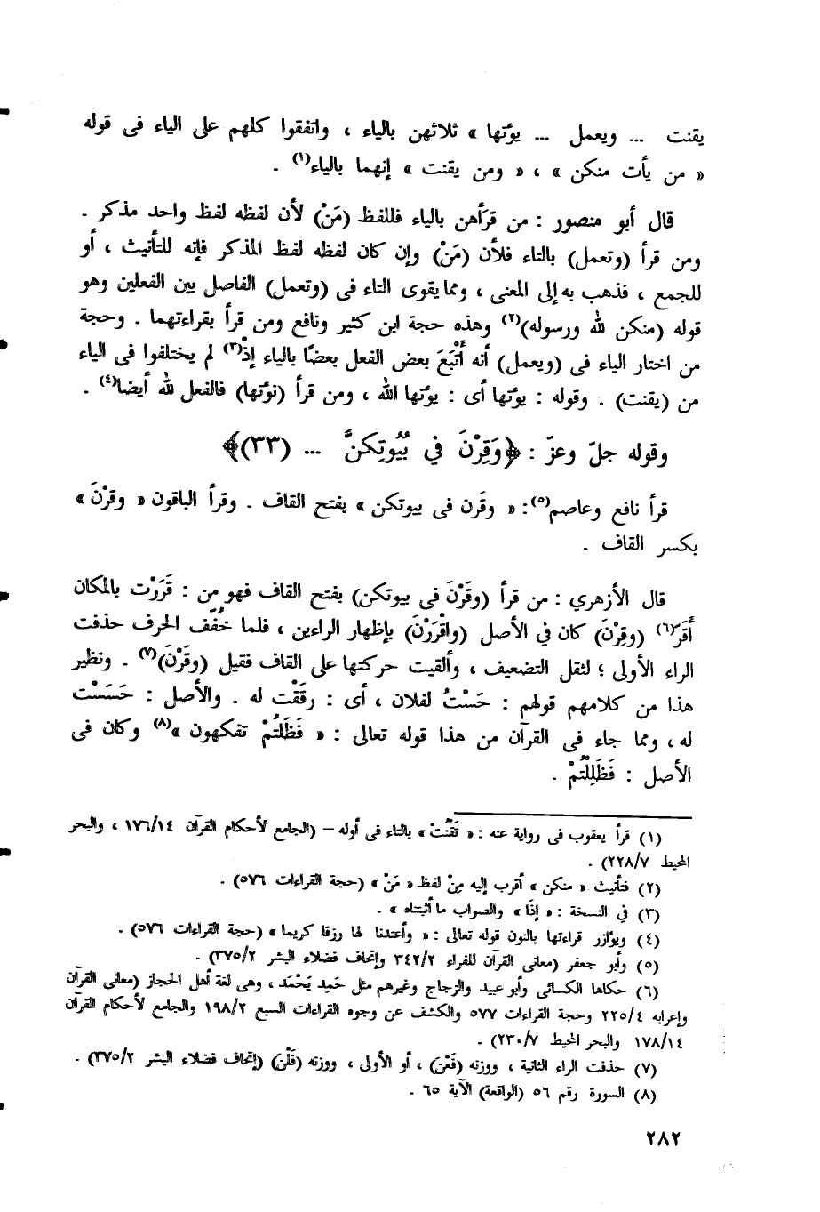 قال الأزهري: من قرأ (وَقَرْنَ فِي بُيُوتِكُنَّ) بفتح القاف فهو من - قَرَرْت بالمكان أقَرُّ