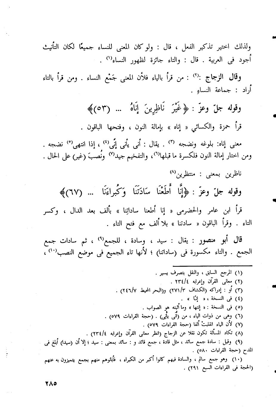 قرأ ابن عامر والحضرمي (إِنَّا أَطَعْنَا سَادَاتِنَا) بألف بعد الدال، وكسر