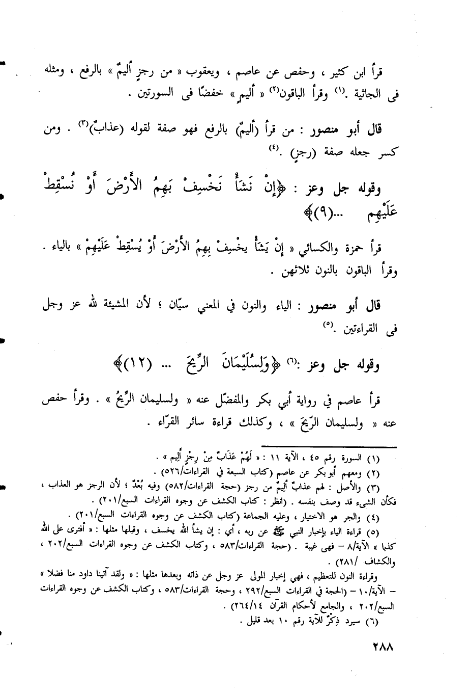 قال أبو منصور: مَنْ قَرَأَ (أَلِيمٌ) بالرفع فهو صفة لقوله (عذابٌ) .