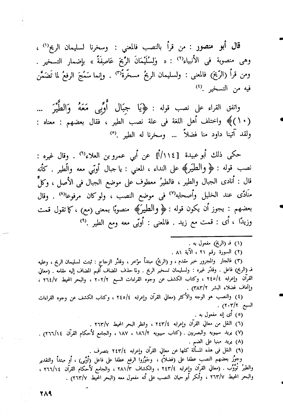واختلف أهل اللغة في علة نصب الطير، فقال بعضهم: معناه: