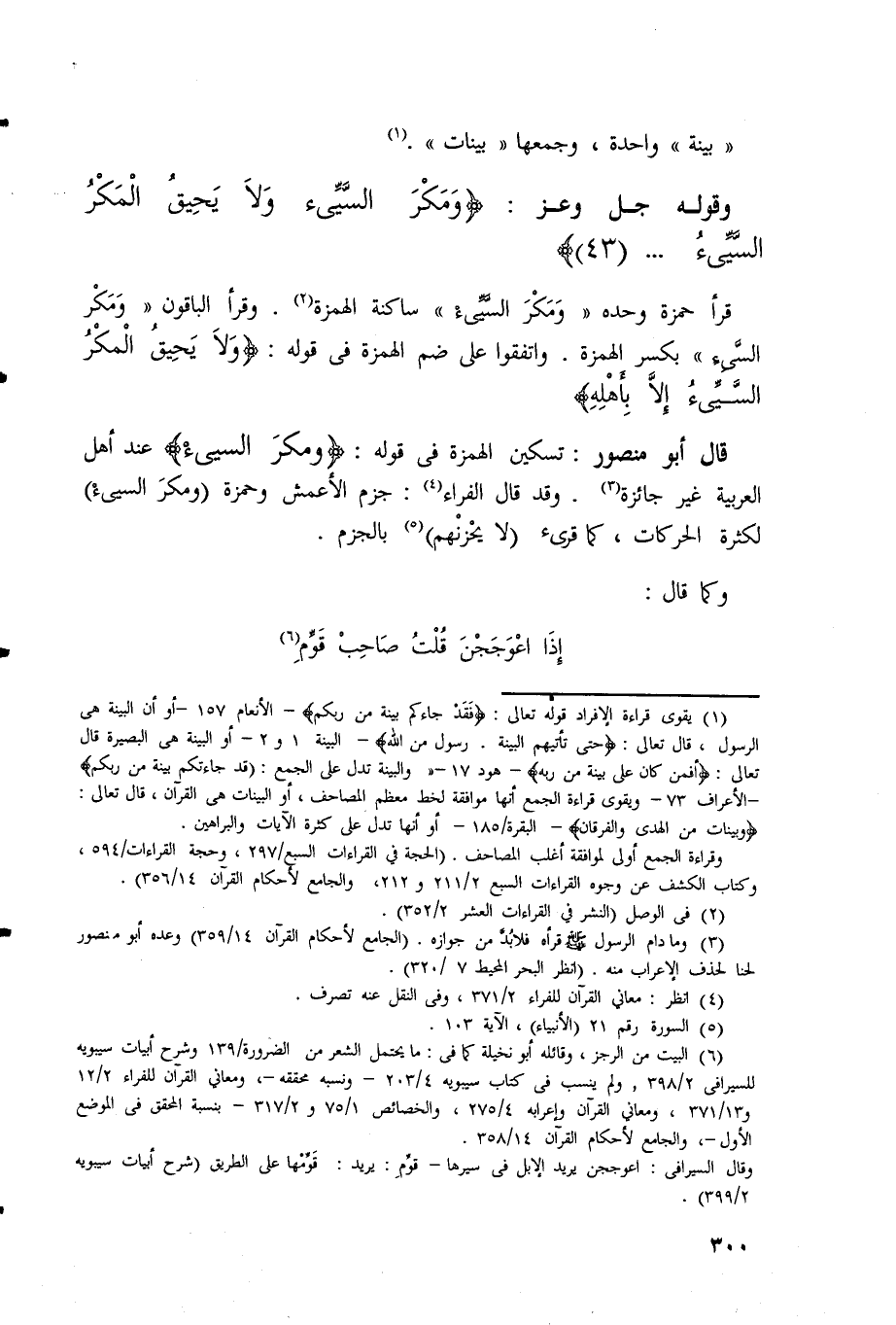 قال أبو منصور: تسكين الهمزة في قوله: (وَمَكْرَ السَّيِّئْ) عند أهل