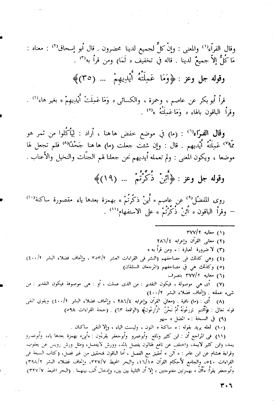قرأ أبو بكر عن عاصم، وحمزة، والكسائي (وَمَا عَمِلَتْ أيْدِيهِمْ) بغير هاء وقرأ الباقون بالهاء (وَمَا عَمِلَتْهُ) .