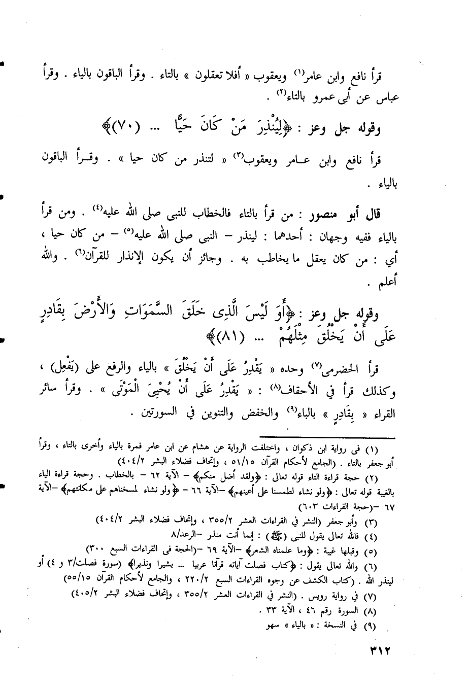 قرأ نافع وابن عامر ويعقوب (لِتُنْذِرَ مَنْ كَانَ حَيًّا) .