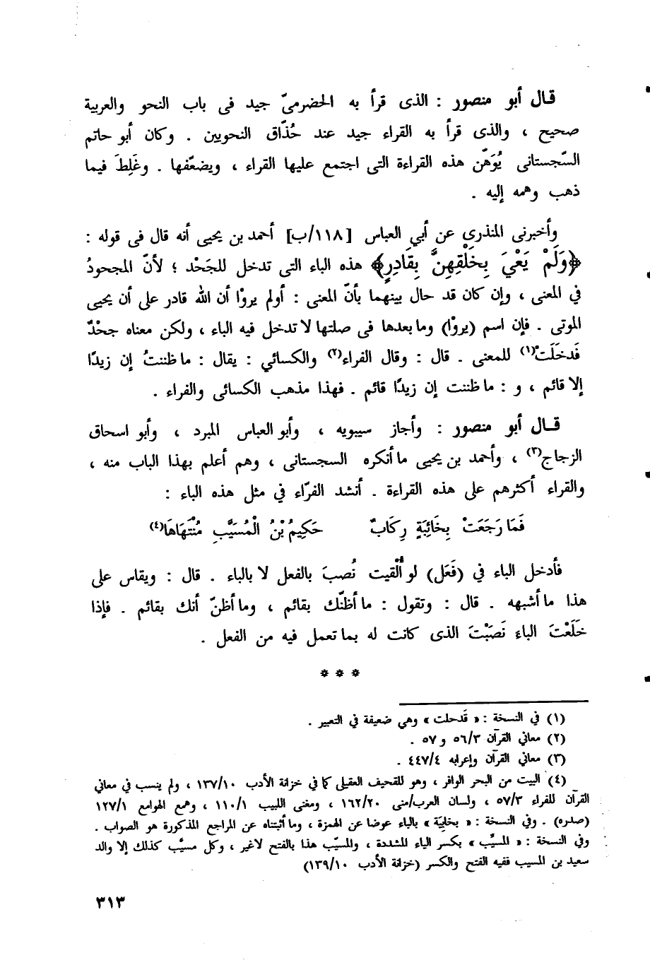 قال أبو منصور: وأجاز سييويه، وأبو العباس المبرد، وأبو إسحاق
