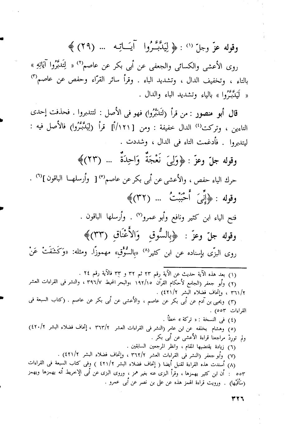 قال أبو منصور: مَنْ قَرَأَ (لِتَدَبَّرُوا) فهو في الأصل: لتتدبروا.