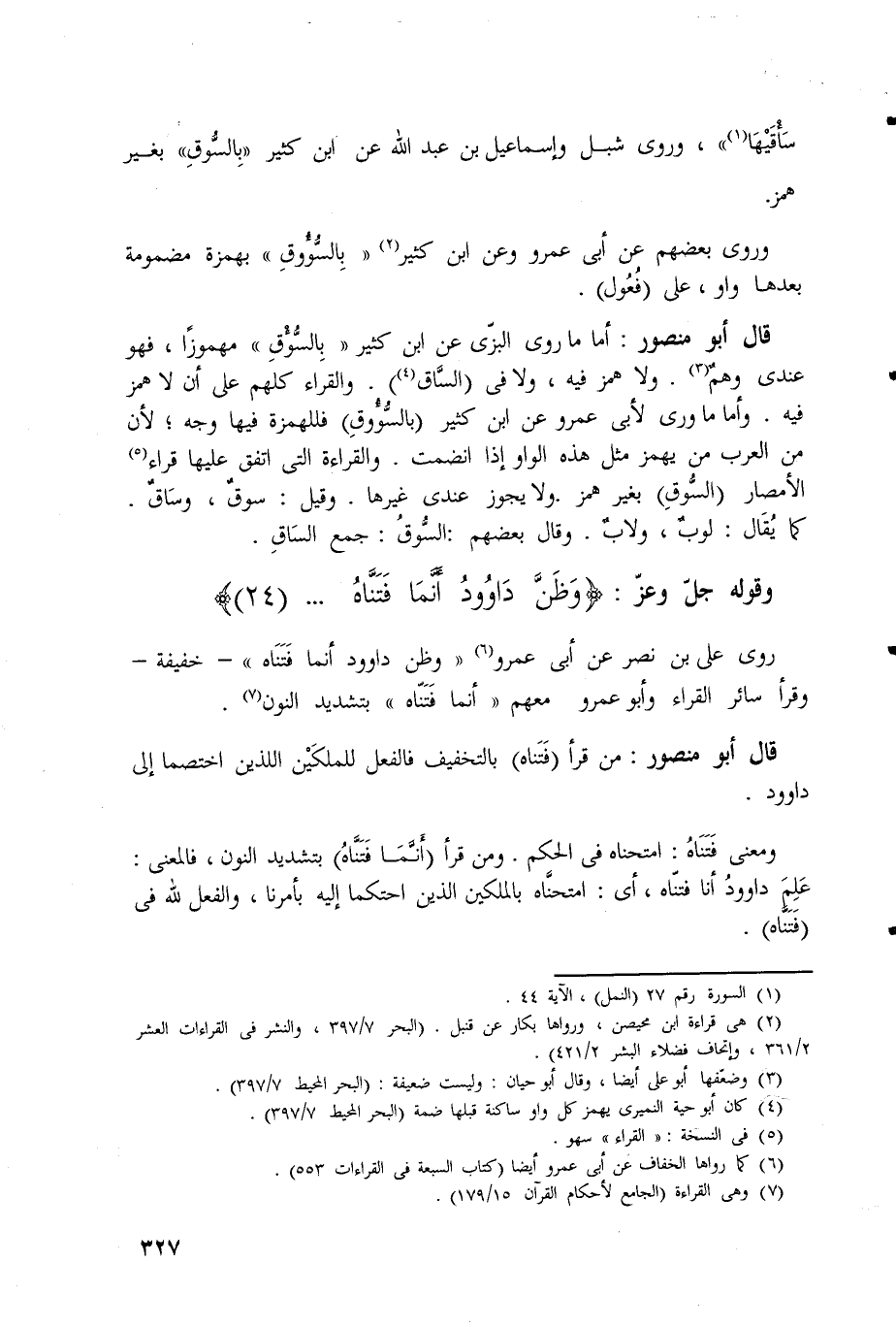 روى علي بن نصر عن أبي عمرو (وَظَنَّ دَاوُودُ أَنَّمَا فَتَنَاهُ) - خفيفة -
