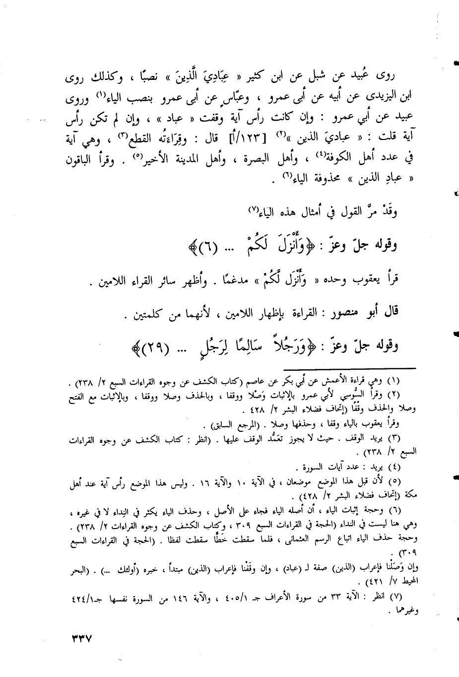 ابن اليزيدي عن أبيه عن أبي عمرو، وعبّاس عن أبي عمرو بنصب الياء وروى عبيد عن أبي عمرو: وإن كانت رأس آية وقفت " عباد) ، وإن لم تكن رأس آية قلت: (عباديَ الذين) .