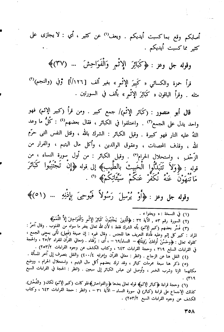 قال أبو منصور: (كَبَائِرَ الْإِثْمِ) /جمع كبير.
