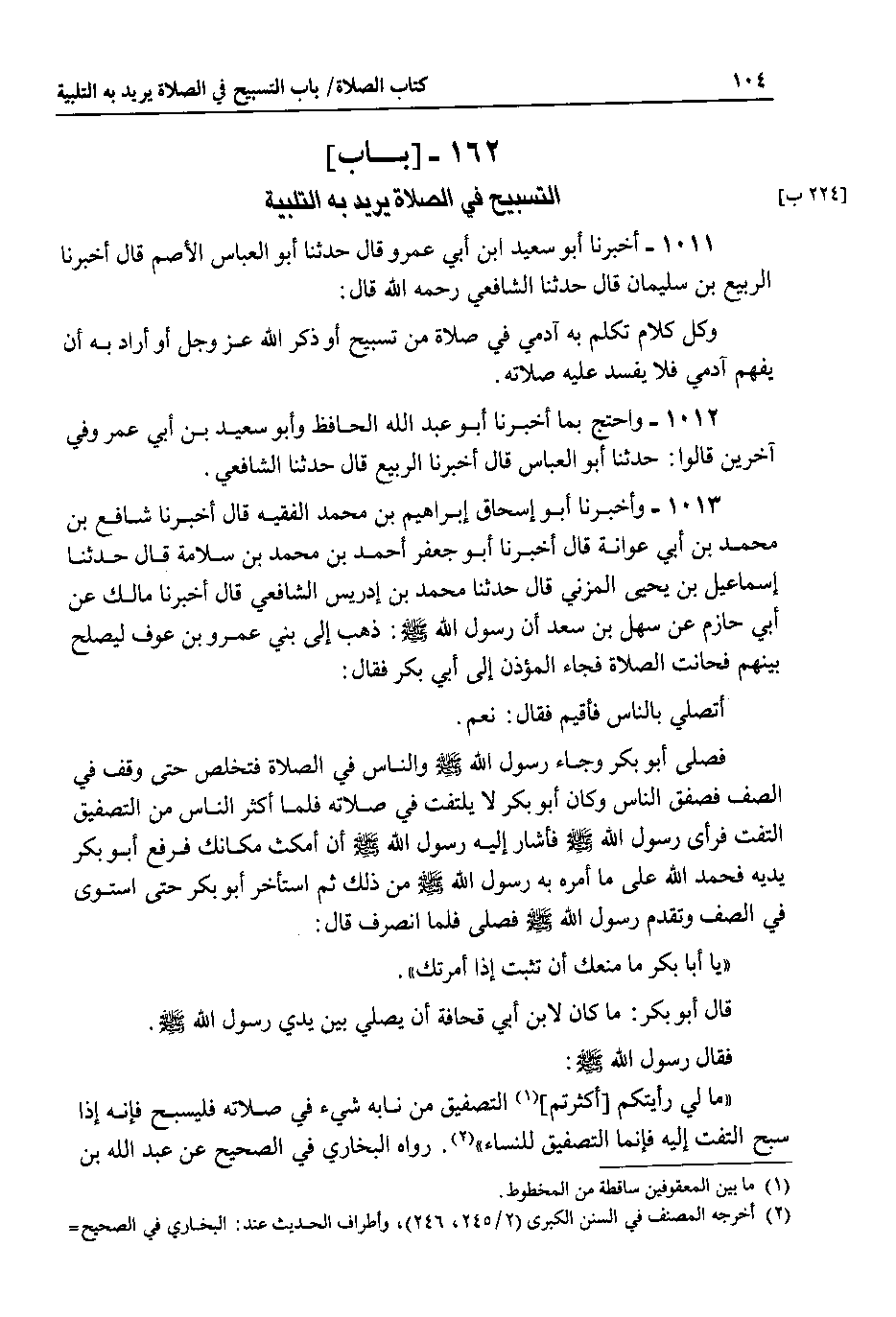 162 - باب التسبيح في الصلاة يريد به التلبية