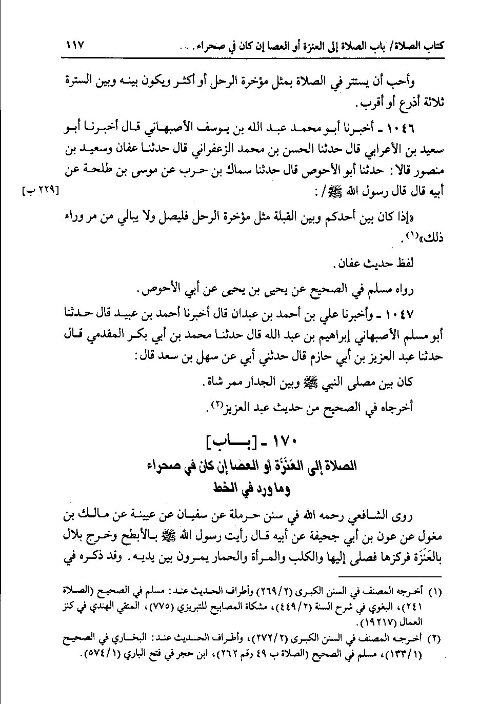 170 - باب الصلاة إلى العنزة أو العصا إن كان في صحراء وما ورد في الخط