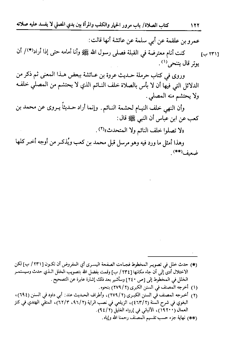 عمرو بن علقمة عن أبي سلمة عن عائشة أنها قالت : كنت انام معترضة في القبلة فصلى رسول الله صلى الله عليه وسلم وأنا امامه حتى إذا أراد أن يوتر قال يتنحى.