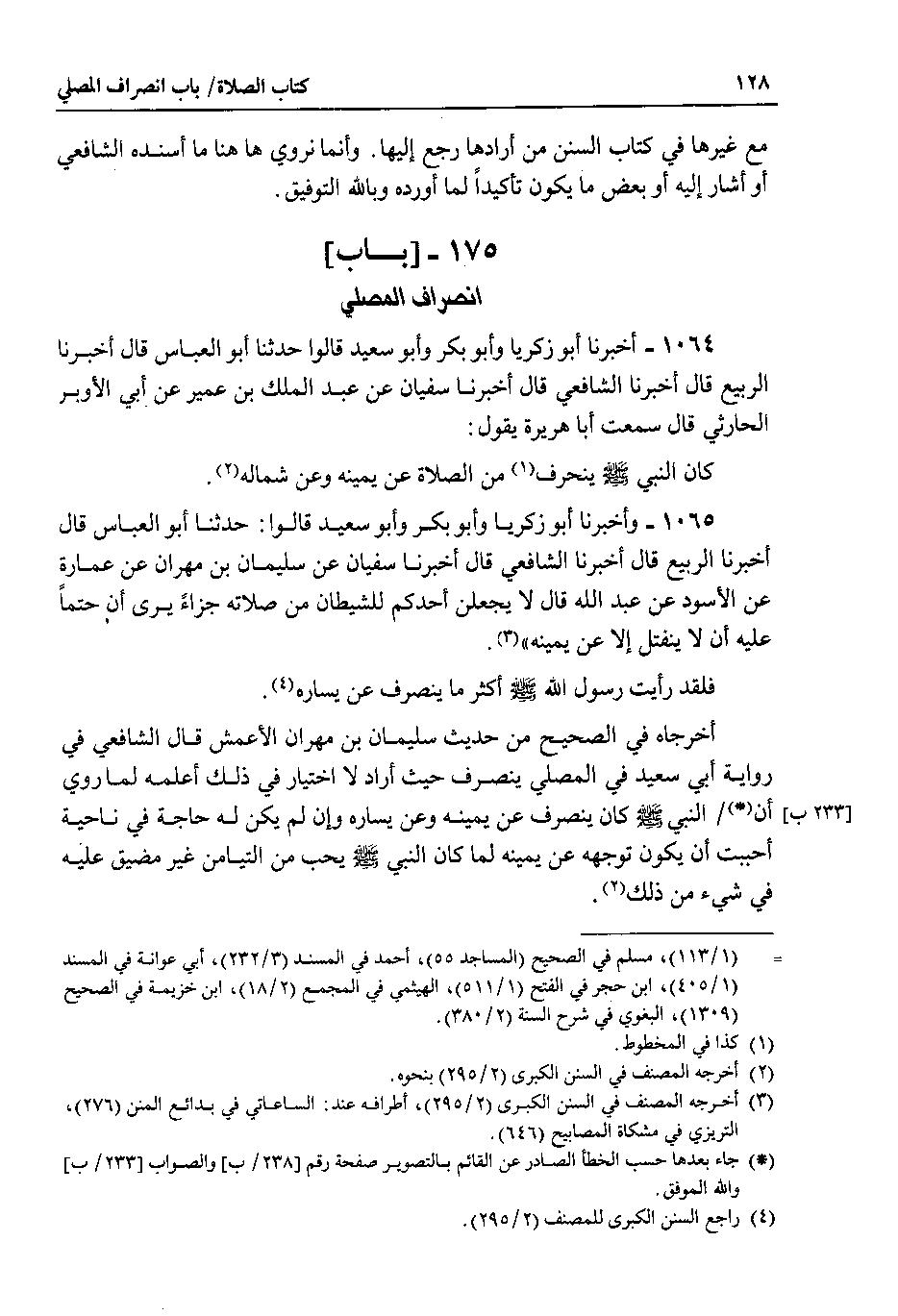 1064 - اخبرنا أبو زكريا وأبو بكر وأبو سعيد قالوا حدثنا أبو العباس قال اخبرنا الربيع قال اخبرنا الشافعي قال اخبرنا سفيان عن عبد الملك بن عمير عن أبي الأوبر الحارثي قال سمعت أبا هريرة يقول : كان النبي صلى الله عليه وسلم ينحرف من الصلاة عن يمينه وعن شماله.