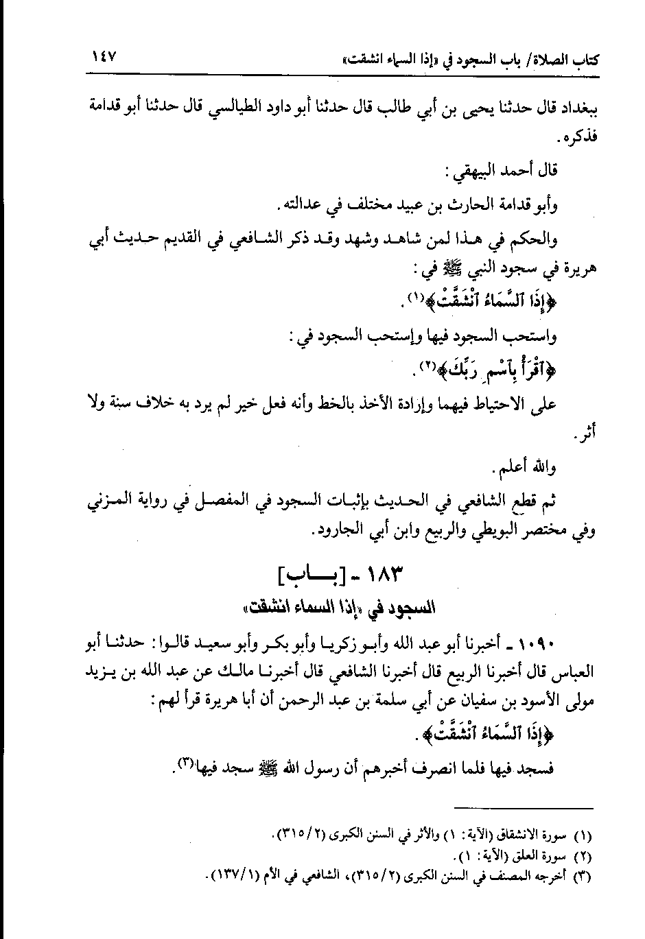 والحكم في هذا لمن شاهد وشهد وقد ذكر الشافعي في القديم حديث أبي هريرة في سجود النبي صلى الله عليه وسلم في : {إذا السماء انشقت}.