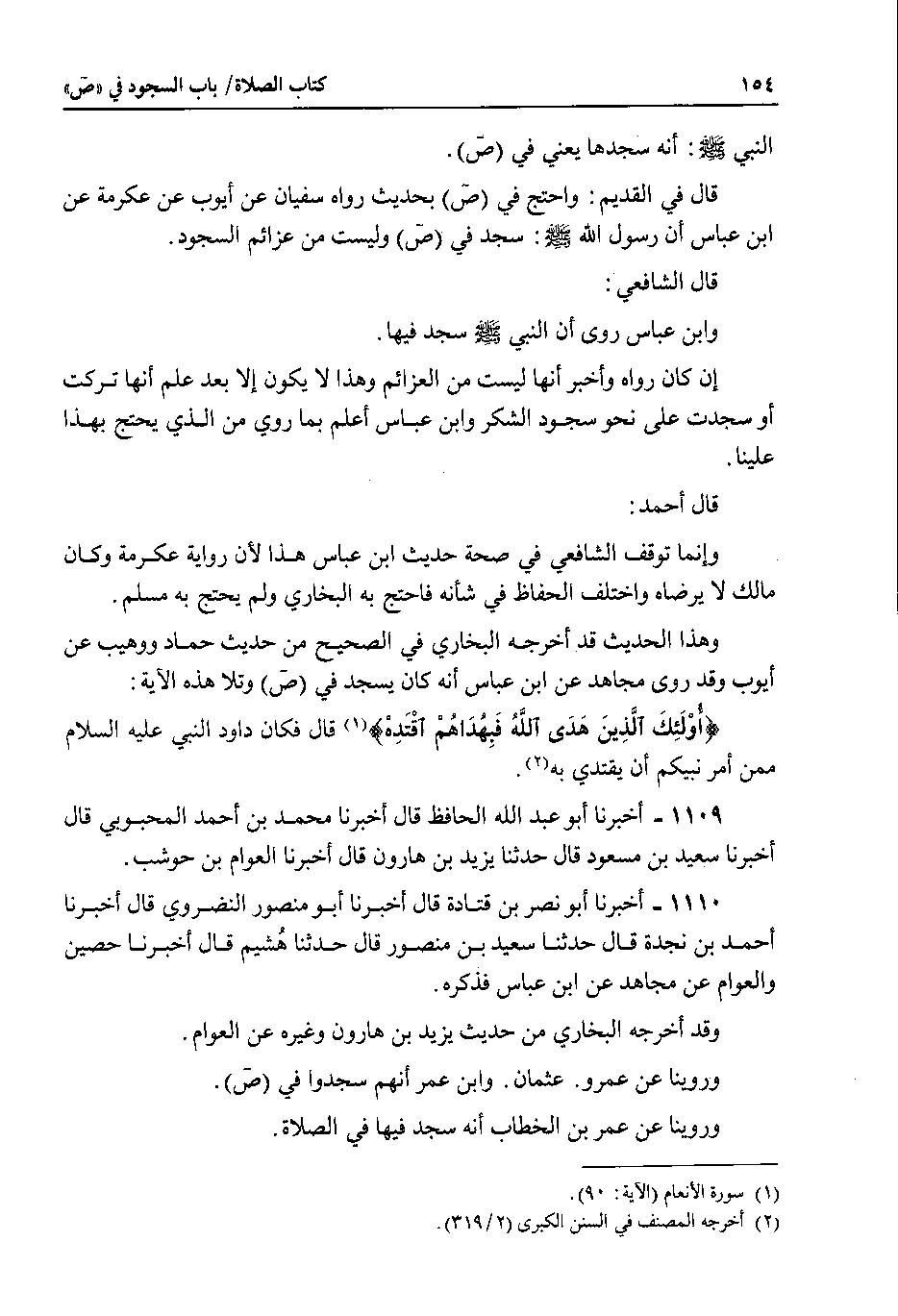 وروينا عن عمرو . عثمان . وابن عمر انهم سجدوا في ( ص~ ).