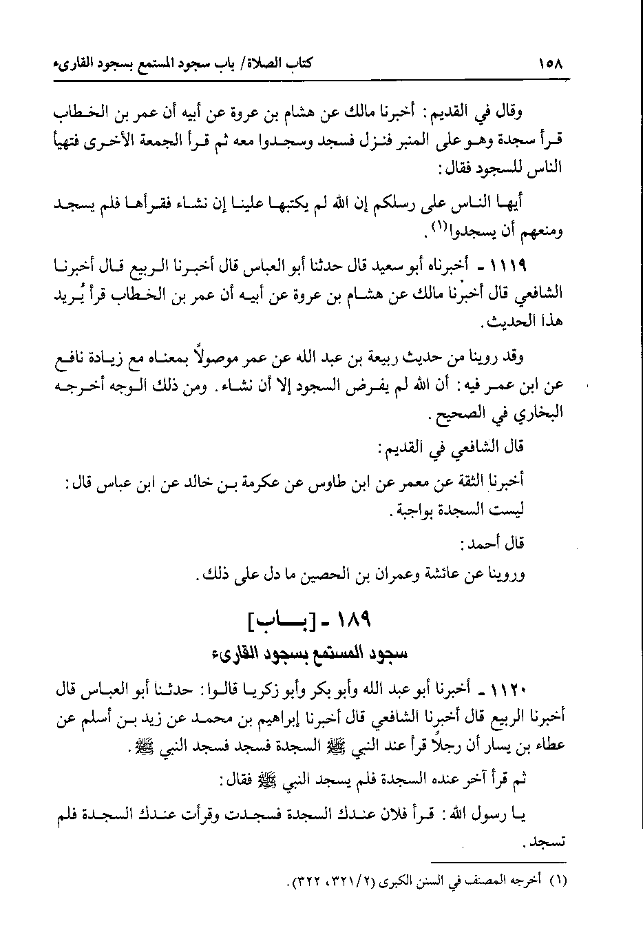1120 - أخبرنا أبو عبد الله وأبو بكر وأبو زكريا قالوا : حدثنا أبو العباس قال اخبرنا الربيع قال اخبرنا الشافعي قال اخبرنا إبراهيم بن محمد عن زيد بن اسلم عن عطاء بن يسار أن رجلا قرأ عند النبي صلى الله عليه وسلم السجدة فسجد فسجد النبي صلى الله عليه وسلم.