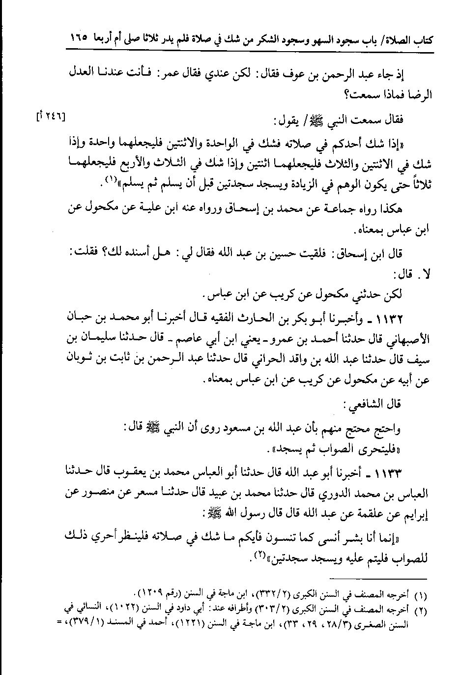 1133 - اخبرنا أبو عبد الله قال حدثنا أبو العباس محمد بن يعقوب قال حدثنا العباس بن محمد الدوري قال حدثنا محمد بن عبيد قال حدثنا مسعر عن منصور عن إبرايم عن علقمة عن عبد الله قال قال رسول الله صلى الله عليه وسلم : إنما أنا بشر انسى كما تنسون فأيكم ما شك في صلاته فلينظر أحري ذلك للصواب فليتم عليه ويسجد سجدتين.