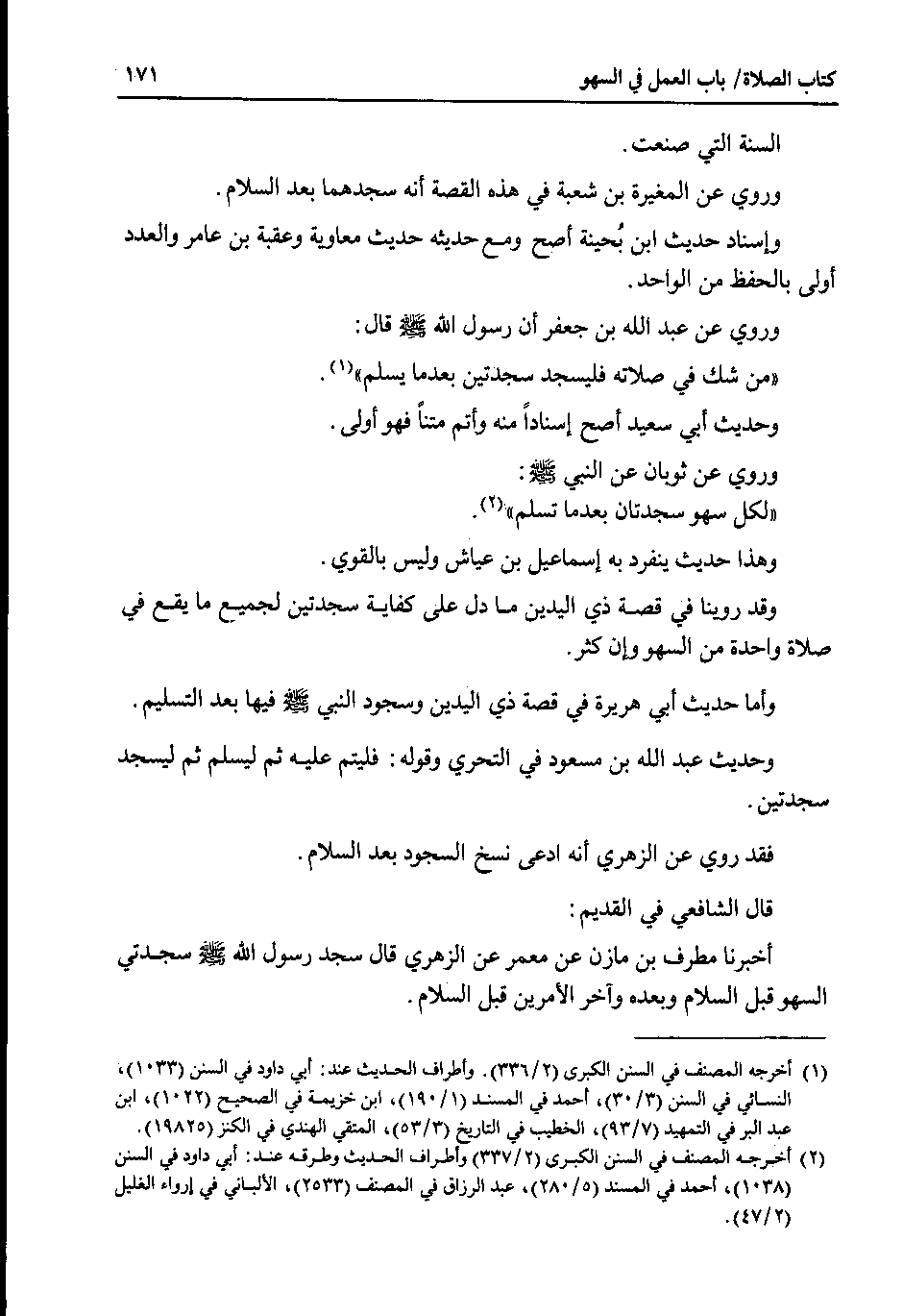 قال الشافعي في القديم : اخبرنا مطرف بن مازن عن معمر عن الزهري قال سجد رسول الله صلى الله عليه وسلم سجدتي السهو قبل السلام وبعده وآخر الأمرين قبل السلام.