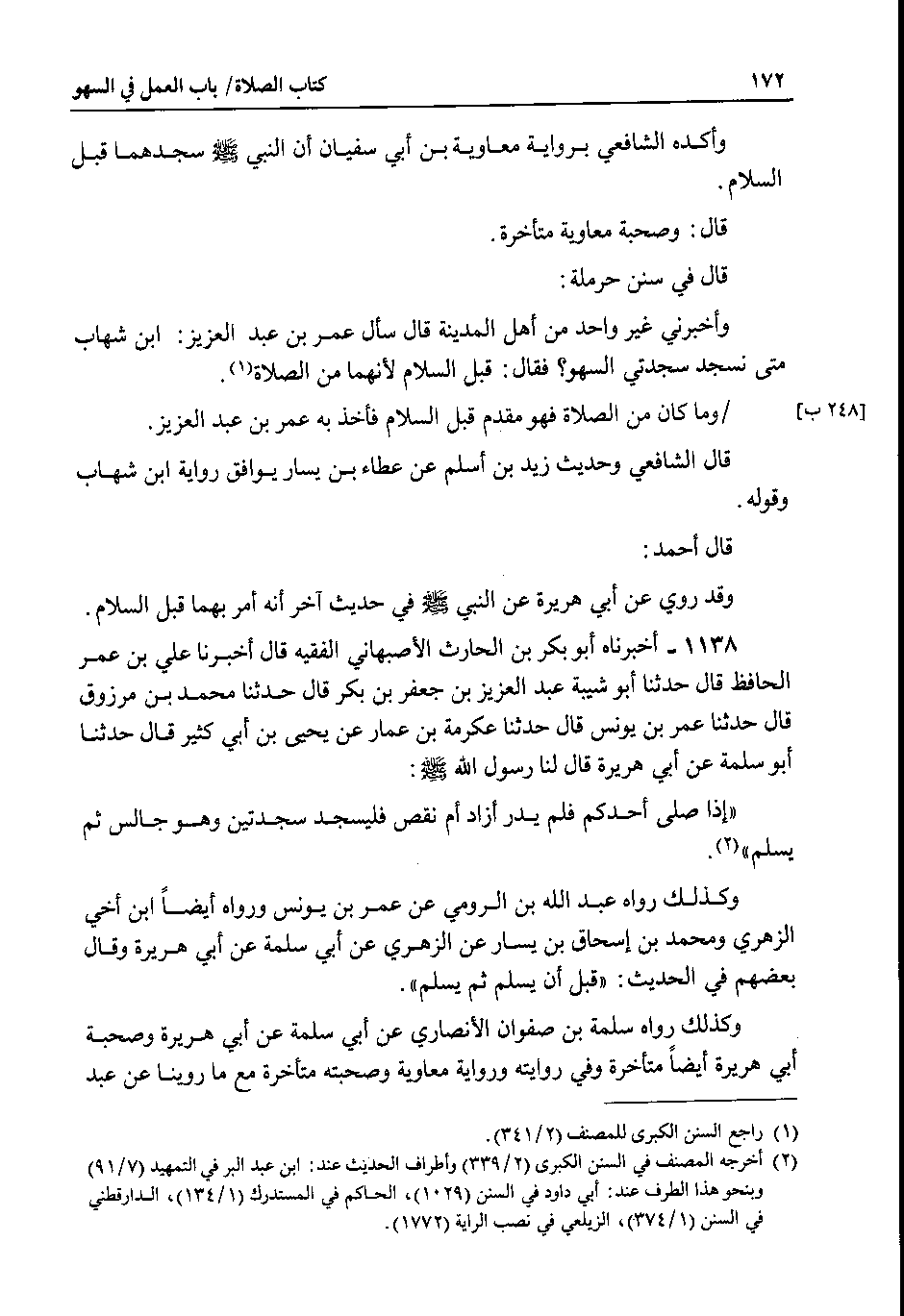 قال أحمد : وقد روي عن أبي هريرة عن النبي صلى الله عليه وسلم في حديث آخر انه أمر بهما قبل السلام.