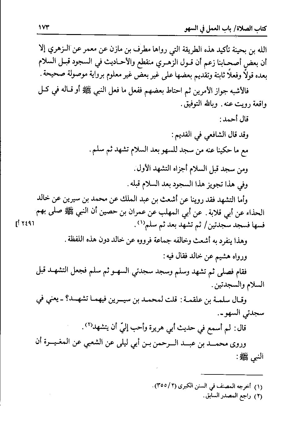 الله بن بحينة تأكيد هذه الطريقة التي رواها مطرف بن مازن عن معمر عن الزهري إلا أن بعض اصحابنا زعم أن قول الزهري منقطع والأحاديث في السجود قبل السلام بعده قولا وفعلا ثابتة وتقديم بعضها على غير بعض غير معلوم برواية موصولة صحيحة.