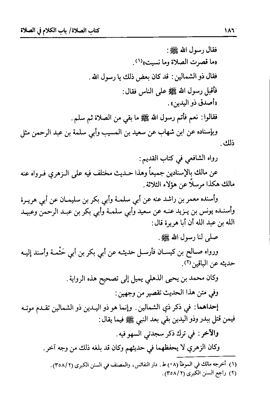 وفي متن هذا الحديث تقصير من وجهين : إحداهما : في ذكر ذي الشمالين . وإنما هو ذو اليدين ذو الشمالين تقدم موته فيمن قتل ببدر وذو اليدين بقي بعد النبي صلى الله عليه وسلم فيما يقال : والآخر : في ترك ذكر سجدتي السهو فيه.