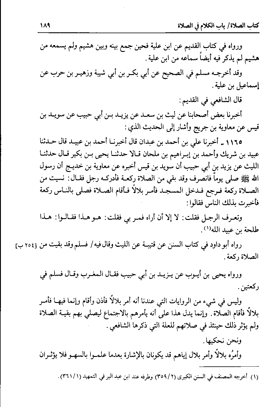 أَخْبَرَنَا بعض اصحابنا عن ليث بن سعد عن يزيد بن أبي حبيب عن سويد بن قيس عن معاوية بن جريج واشار إلى الحديث الذي 1165 - اخبرنا علي بن أحمد بن عبدان قال اخبرنا أحمد بن عبيد قال حدثنا عبيد بن شريك واحمد بن إبراهيم بن ملحان قالا حدثنا يحيى بن بكير قال حدثنا الليث عن يزيد بن أبي حبيب أن سويد بن قيس اخبره عن معاوية بن خديج أن رسول الله صلى الله عليه وسلم صلى يوما فانصرف وقد بقي من الصلاة ركعة فأدركه رجل فقال : نسيت من الصلاة ركعة فرجع فدخل المسجد فأمر بلالا فأقام الصلاة فصلى بالناس ركعة فأخبرت بذلك الناس فقالوا : وتعرف الرجل فقلت : لا إلا أن أراه فمر بي فقلت : هو هذا فقالوا : هذا طلحة بن عبيد الله.
