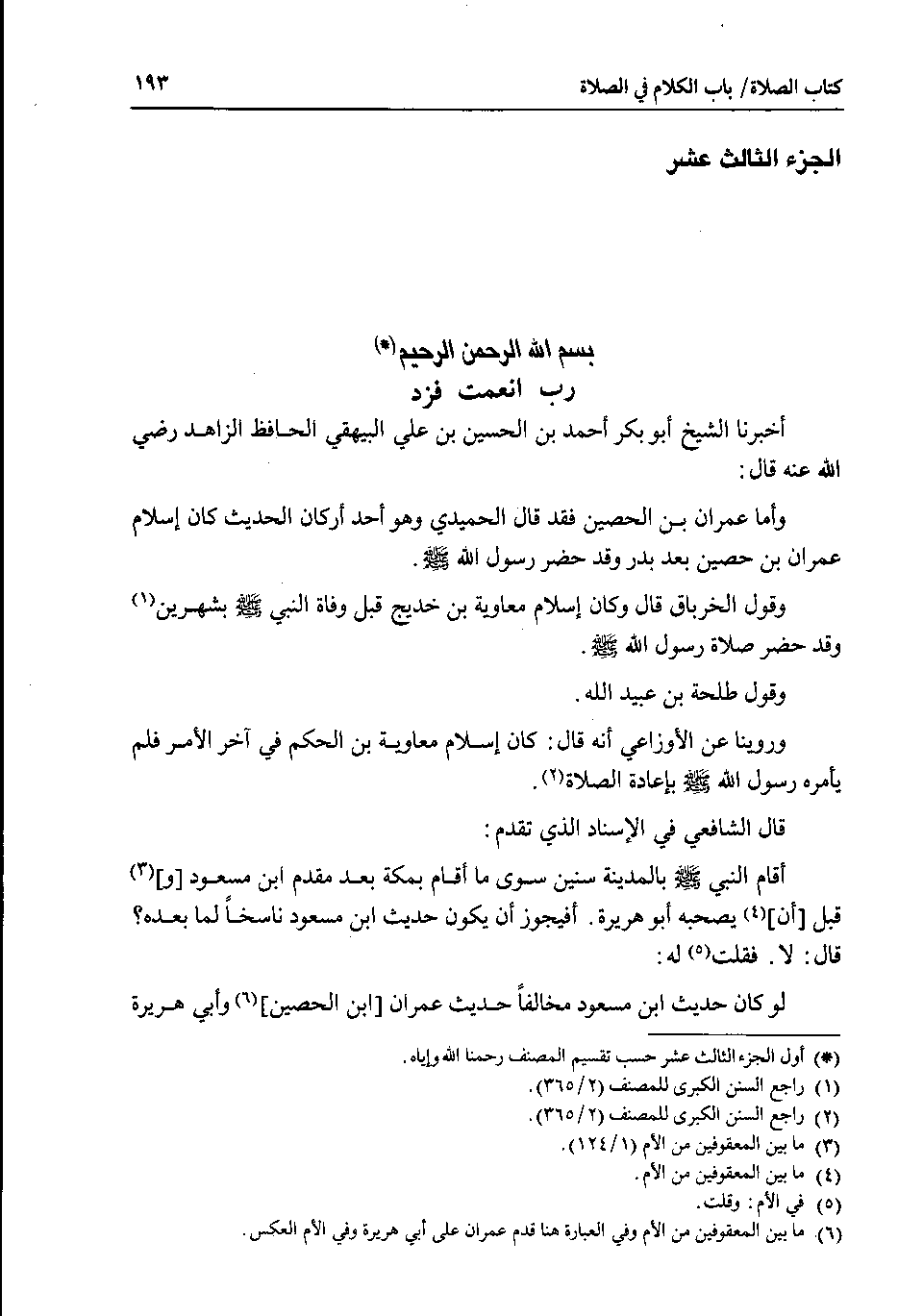 قال الشافعي في الإسناد الذي تقدم : اقام النبي صلى الله عليه وسلم بالمدينة سنين سوى ما أقام بمكة بعد مقدم ابن مسعود و قبل أن يصحبه أبو هريرة . أفيجوز أن يكون حديث ابن مسعود ناسخا لما بعده ؟ قال : لا . فقلت له : لو كان حديث ابن مسعود مخالفا حديث عمران ابن الحصين وأبي هريرة