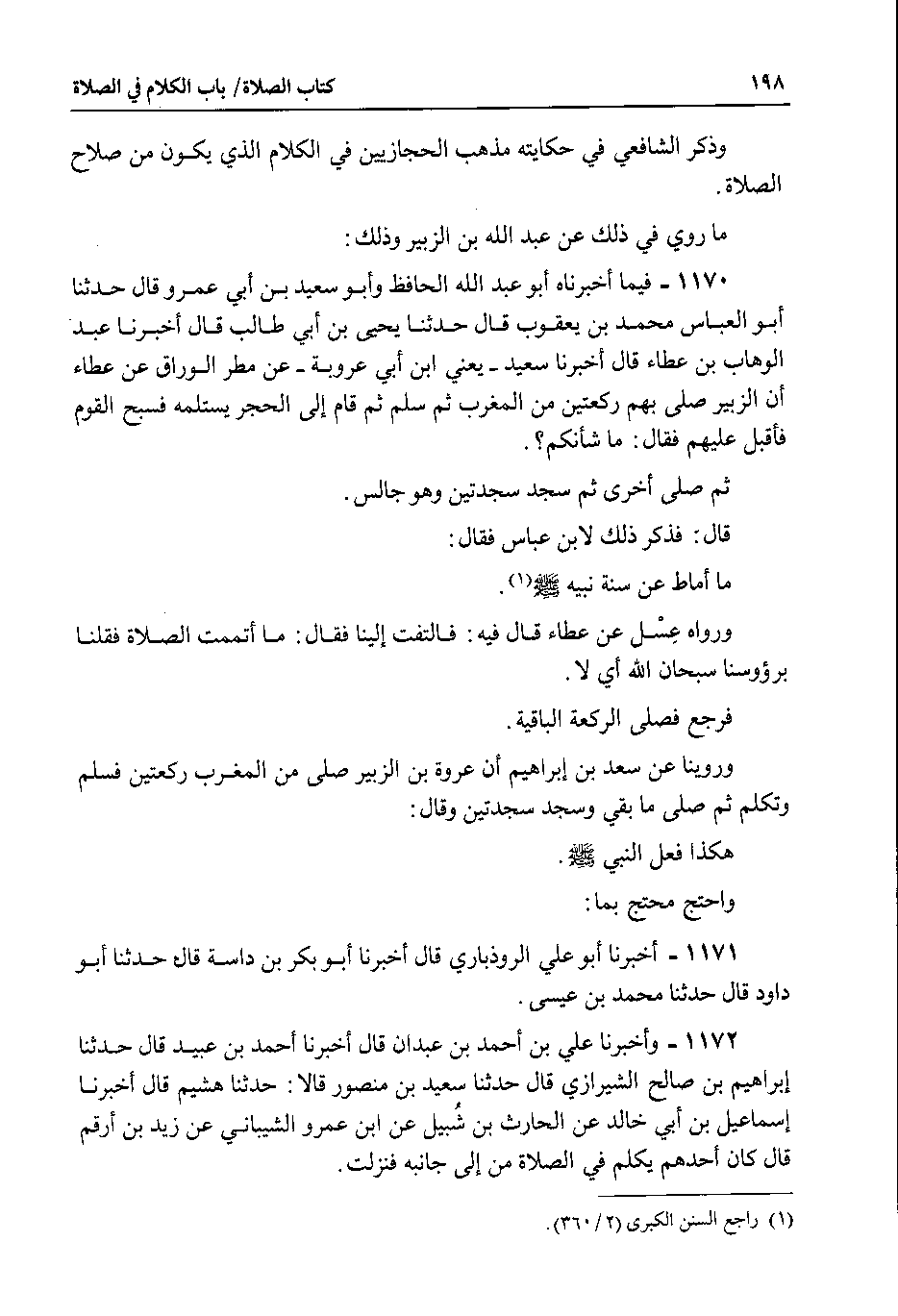 1172 - واخبرنا علي بن أحمد بن عبدان قال اخبرنا أحمد بن عبيد قال حدثنا إبراهيم بن صالح الشيرازي قال حدثنا سعيد بن منصور قالا : حدثنا هشيم قال اخبرنا إسماعيل بن أبي خالد عن الحارث بن شبيل عن ابن عمرو الشيباني عن زيد بن ارقم قال كان أحدهم يكلم في الصلاة من إلى جانبه فنزلت.