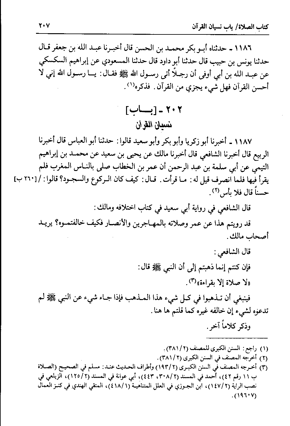 1187 - اخبرنا أبو زكريا وأبو بكر وأبو سعيد قالوا : حدثنا أبو العباس قال اخبرنا الربيع قال اخبرنا الشافعي قال اخبرنا مالك عن يحيى بن سعيد عن محمد بن إبراهيم التيمي عن أبي سلمة بن عبد الرحمن أن عمر بن الخطاب صلى بالناس المغرب فلم يقرأ فيها فلما انصرف قيل له : ما قرأت . قال : كيف كان الركوع والسجود ؟ قالوا : حسنا قال فلا بأس.