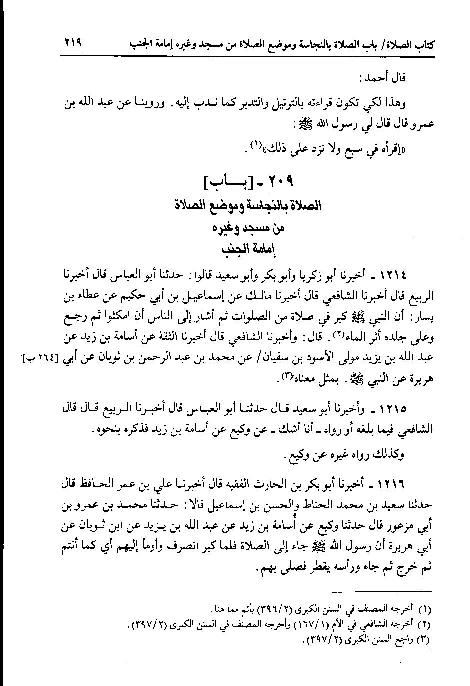 209 - باب الصلاة بالنجاسة وموضع الصلاة من مسجد وغيره إمامة الجنب