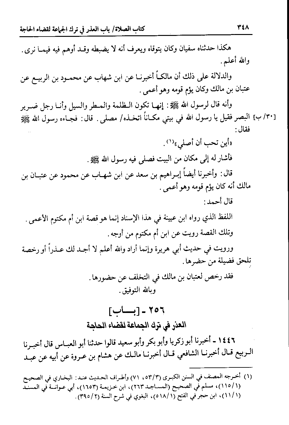 256 - باب العذر في ترك الجماعة لقضاء الحاجة