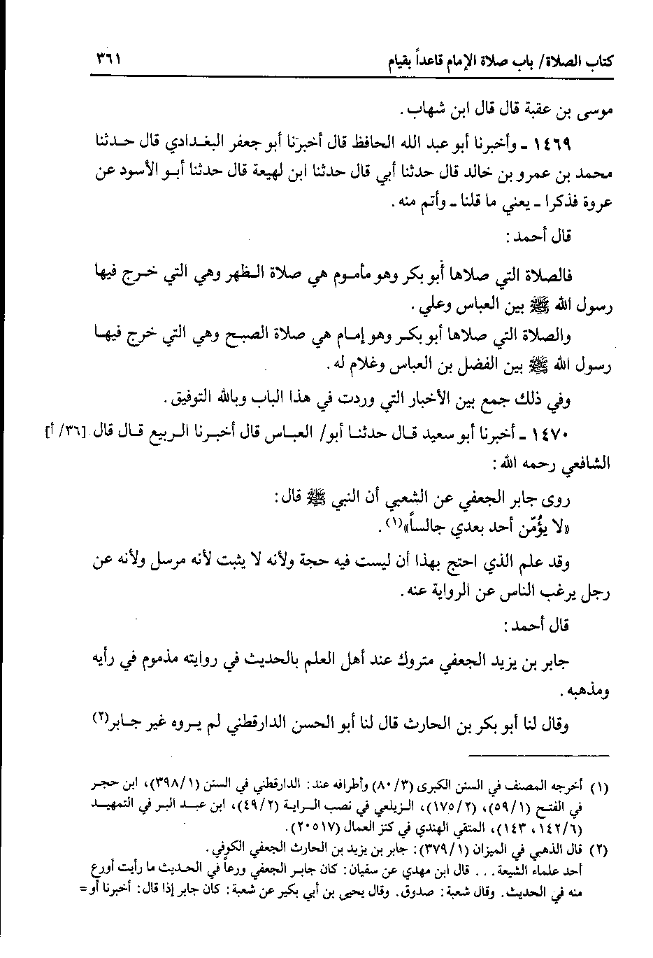 1470 - أخبرنا أبو سعيد قال حدثنا أبو العباس قال أخبرنا الربيع قال قال الشافعي رحمه الله : روى جابر الجعفي عن الشعبي أن النبي صلى الله عليه وسلم قال : لا يؤمن أحد بعدي جالسا.
