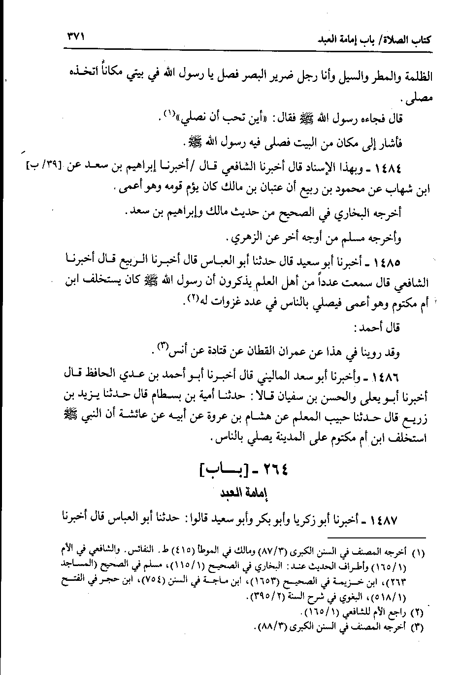 1484 - وبهذا الإسناد قال أخبرنا الشافعي قال أخبرنا إبراهيم بن سعد عن ابن شهاب عن محمود بن ربيع أن عتبان بن مالك كان يؤم قومه وهو اعمى.