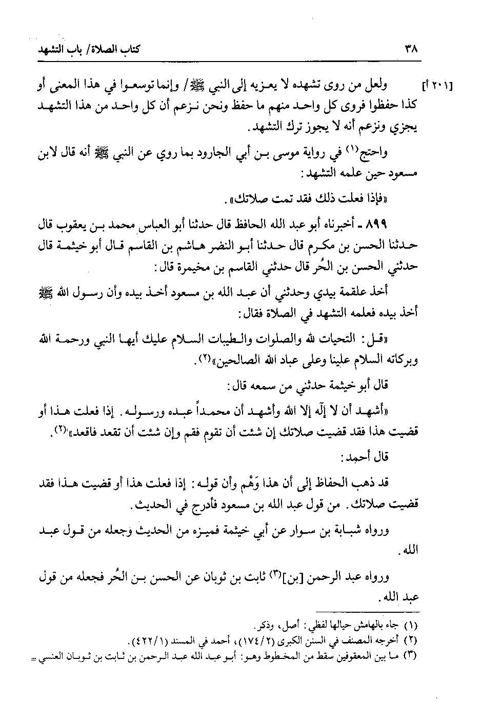 قال أبو خيثمة حدثني من سمعه قال : أشهد أن لا إله إلا الله وأشهد أن محمداً عبده ورسوله . إذا فعلت هذا أو قضيت هذا فقد قضيت صلاتك إن شئت أن تقوم فقم وإن شئت أن تقعد فاقعد.