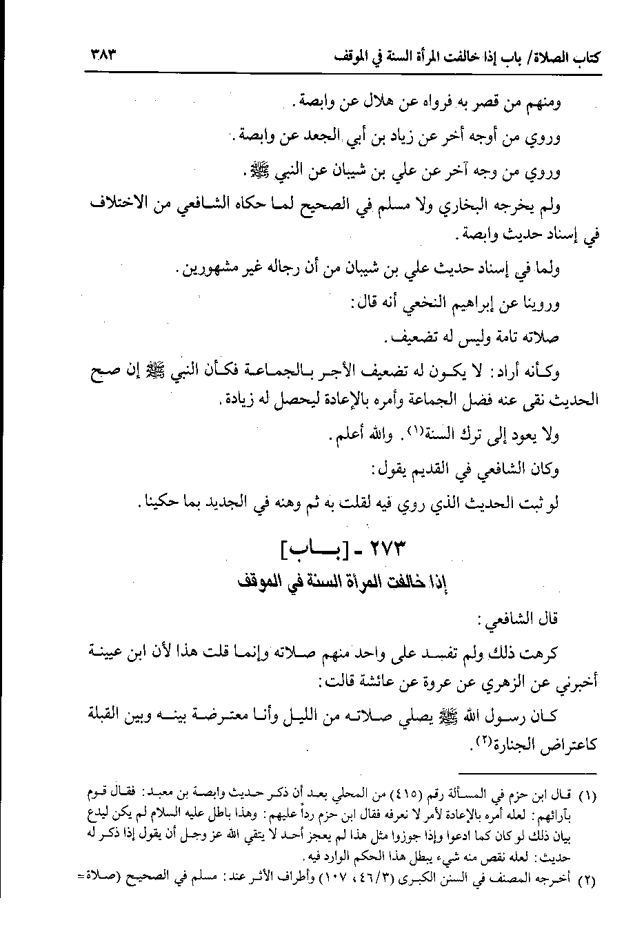273 - باب إذا خالفت المرأة السنة في الموقف
