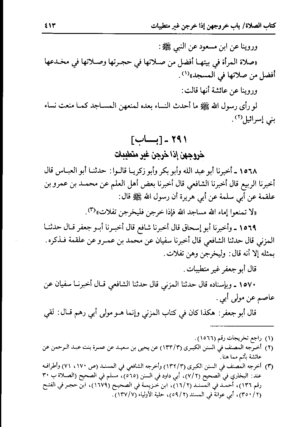 3 @وروينا عن ابن مسعود عن النبي صلى الله عليه وسلم : صلاة المرأة في بيتها افضل من صلاتها في حجرتها وصلاتها في مخدعها افضل من صلاتها في المسجد.