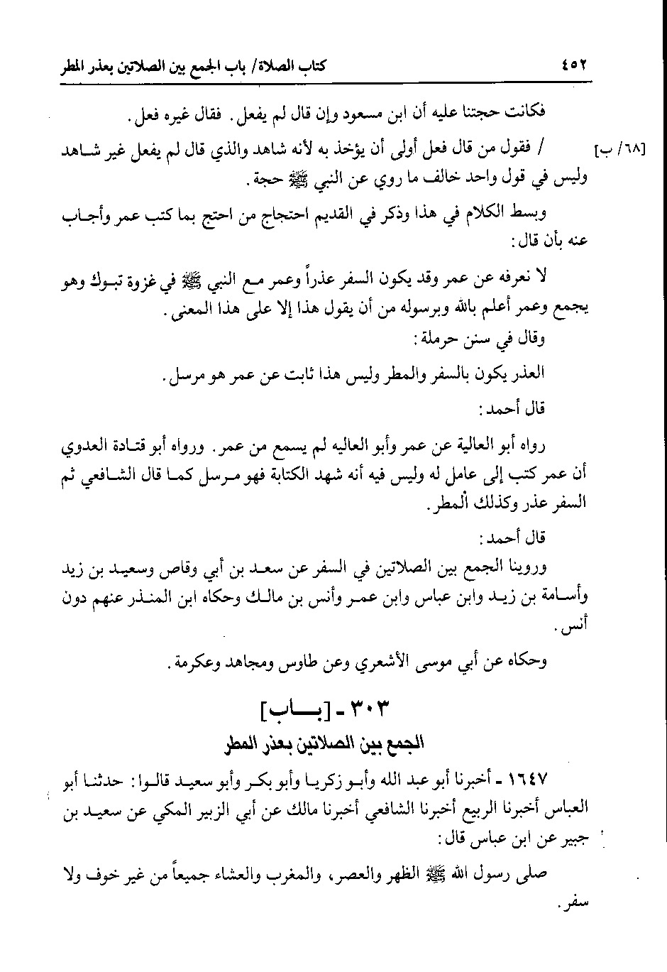 303 - باب الجمع بين الصلاتين بعذر المطر
